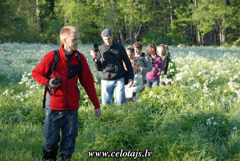 | Putni un zvēri Vaides pļavās Dodoties putnu un zvēru vērošanas maršrutos, nekad nevari būt drošs, ko sastapsi mežā. Tā arī šoreiz, neliela grupiņa gida Helmuta Hofmaņa pavadībā devās agrā rīta pastaigā pa Slīteres Vaides pļavām, pat nenojaušot, ka pēc neilga mirkļa ieraudzīs melno stārķi, kas, soļu iztraucēts, pārlidoja zemu virs galvām un aizlaidās dziļāk Vaides pļavās. P Pēc pāris soļiem jau sekoja otrais pārsteigums - 300 m attālumā pļavas vidū brokastoja briežu mamma, un vēl pēc neilga mirkļa gājēji pamanīja mazo ērgli. Melno stārķi tajā rītā viņi sastapa divas reizes un tā, pēc gida vārdiem, esot liela veiksme. Ceļotāji stāstīja, ka redzētie zvēri un putni, bebru pēdas un rīta migla ar rasu garajā pļavas zālē radīja sajūtu, ka nonākuši citā pasaulē. Un pēc visa redzētā skaidrs, ka bija vērts celties agri, lai paspētu uz maršrutu plkst. 6:00, bija vērts slapināt kājas rīta rasā un pieciest dažu labu oda kodumu, jo tā ir ieejas biļete, lai pabūtu kādu mirkli putnu un zvēru pasaulē. |