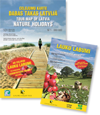 Идеи для поездок или походов на выходных по Латвии найдете в карте "Dabas takas Latvijā". В карте отмечено 101 место - природные тропы, смотровые вышки, пастбища диких животных, городища, вековые деревья и т.д. Имеется описание каждого объекта осмотра, цветная фотография, и, где возможно, контактная информация. Если желаете, чтобы мы порекомендовали и зарезервировали подходящие места ночлега по выбранному Вами маршруту, собращайтесь к нам. По запросу разработаем также индивидуальные маршруты по Латвии, Литве и/или Эстонии. Стоимость разработки маршрута - 15-40 LVL, в зависимости от продолжительности и специфики. Если свое путешествие Вы охотнее организовываете сами, необходимую информацию найдете в путеводителях и картах |