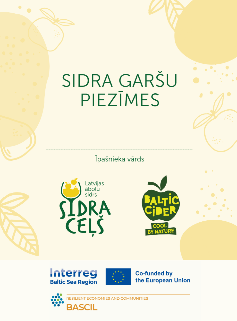 2) brošūru “Sidra garšu piezīmes” (latviešu valodā) / “Sidra garšu piezīmes” (angļu valodā)